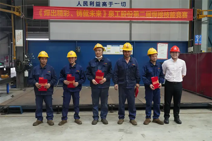 Когато състезанието беше към края си, г-н Фу Бинхуанг, председател на компанията, изнесе реч. Той каза: Успешното провеждане на 2-рото състезание по заваръчни умения на Quangong Co., Ltd. през 2025 г. постави основата за компанията да култивира отлични квалифицирани заварчици и изгради платформа за показване на служителите, за да обменят технологии и да показват своите умения. Той даде пълна игра на типичната демонстрационна роля на определящи темпото на уменията, което е благоприятно за създаване на екип от висококачествени таланти с правилна идеологическа ориентация, първокласно качество на производството на продукти и практически стандарти за работа, като по този начин цялостно повишава основната конкурентоспособност на компанията, насърчавайки стратегическото развитие на компанията по-бързо и по-добре и стремейки се да изгради по-добър живот!