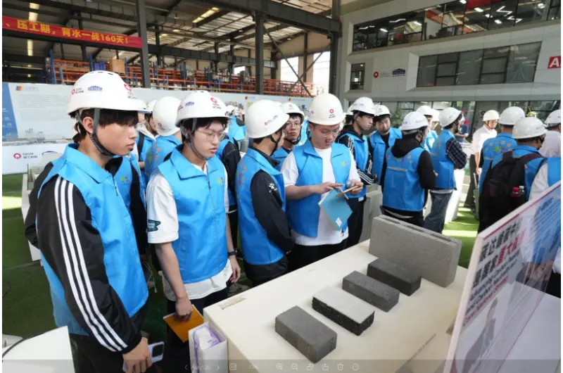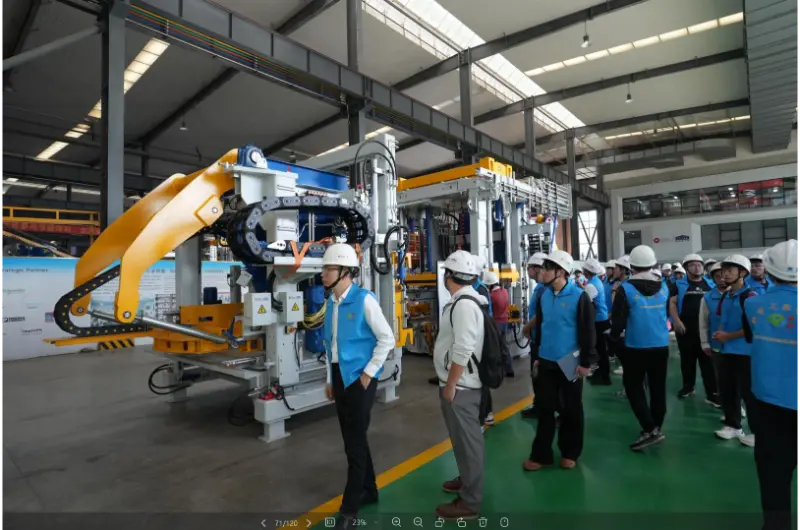 В цеха за производство на оборудване посетителите разгледаха лабораторията, цеха за сглобяване и цеха за отстраняване на грешки, като научиха за целия процес от анализа на суровините до пълните комплекти автоматизирано оборудване за производство на блокове. В пробната зона бяха показани различни спецификации и приложения на продукти, произведени с помощта на машините за производство на тухли на компанията, включително тухли за вътрешни и външни стени, тухли за външни настилки и бордюри, материали за опазване на водата и контрол на наводнения, екологична защита на склонове и гравитационни подпорни стени. В конферентната зала беше прожектиран рекламен видеоклип на компанията.