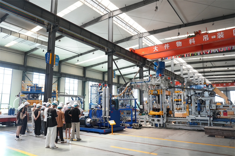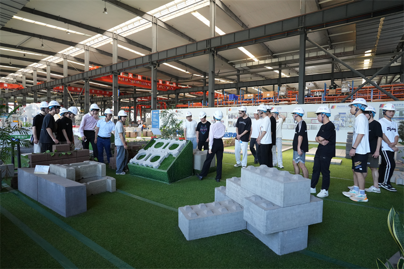 В производствения цех учениците наблюдаваха отблизо цялата производствена линия за еко-тухли. От прецизната обработка на суровините до сложния процес на производство на крайния продукт, всяка стъпка демонстрира ефективността и прецизността на автоматизираното производство. Усъвършенстваното производствено оборудване работеше гладко, а ефективните автоматизирани процеси значително подобриха ефективността на производството, докато стриктната система за контрол на качеството гарантира високо качество на продукта. Студентите често спираха, за да наблюдават, изразявайки силен интерес към модерния производствен модел.