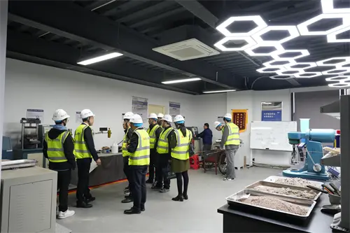 Влизайки в лабораторията за научноизследователска и развойна дейност на Qgong, гостуващият екип беше привлечен от инструментите с висока точност и натоварените научни изследователски сцени. Това е не само "инкубатор" за нови строителни материали, но и предприема основни теми като оптимизация на съотношението на агрегатите на твърди отпадъци и тестването на якостта на натиск върху тухлите.