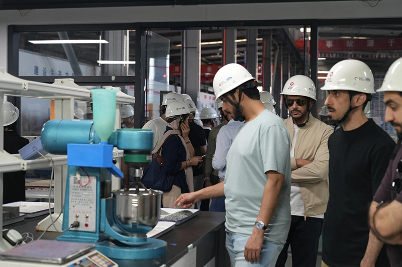 В лабораторията за производство на тухли делегацията стана свидетел на „специализираните“ възможности за научноизследователска и развойна дейност на Quanzhou Machinery. Като изследователска и развойна база, създадена съвместно с университети като Фуджоуския университет и Пекинския университет по строителство и архитектура, той е оборудван с усъвършенствано оборудване за тестване на материали и разработване на формули, способно да предостави персонализирани решения за производство на тухли въз основа на характеристиките на суровините, климатичните условия и изискванията на проекта в региона на клиента.