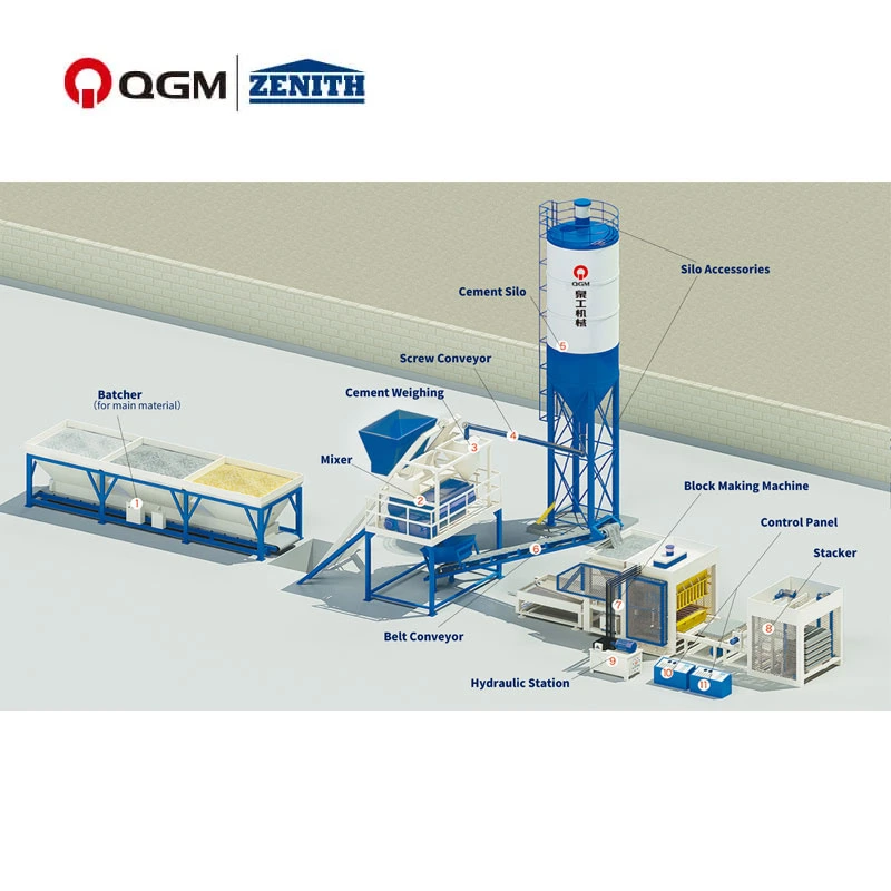 Автоматичната машина за производство на блокове е машина, използвана главно за производство на нови блокове от стенни материали, което е едно от оборудването за производство на тухли. Продуктите, произведени от автоматичната машина за производство на блокове, могат да бъдат преработени в различни нови материали за стени, като се използват промишлени отпадъчни материали като пясък, камък, летлива пепел, въглищна шлака, въглищна пуста шлака, шлака от хвост, керамзит, перлит и др. Автоматичната машина за производство на блокове използва напълно автоматична PLC система за управление с интерактивен интерфейс човек-машина. Системата за управление е конфигурирана с безопасно логическо управление и има функции за показване на производствена програма и диагностика на грешки. Той подобрява ефективността на производството и намалява необходимостта от ръчна намеса, като прави целия производствен процес по-интелигентен и автоматизиран. Чрез замяна на различни форми, автоматичната машина за производство на блокове може да произвежда стенни блокове с различни спецификации и форми, включително, но не само, порести тухли, кухи блокове, бордюри, тухли за тротоари, тухли с трева, тухли с шахматна дъска и други циментови продукти.